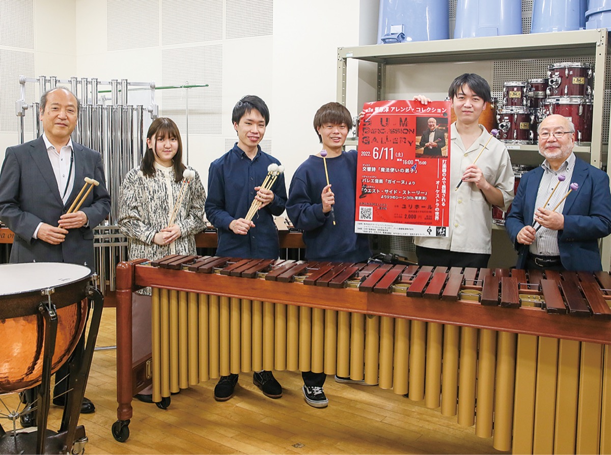 曲目は『魔法使いの弟子』、バレエ音楽『ガイーヌ』、『ウエスト・サイド・ストーリー』より5つのシーン。これらオーケストラの名曲を、元読売日本交響楽団首席ティンパニ奏者の菅原淳さん(74)=万福寺在住=が編曲。菅原さんが客員教授として指導する同大打楽器専攻の卒業生、学生で構成される「SUM(昭和音楽大学)パーカッション・ギャラリー」が演奏する。