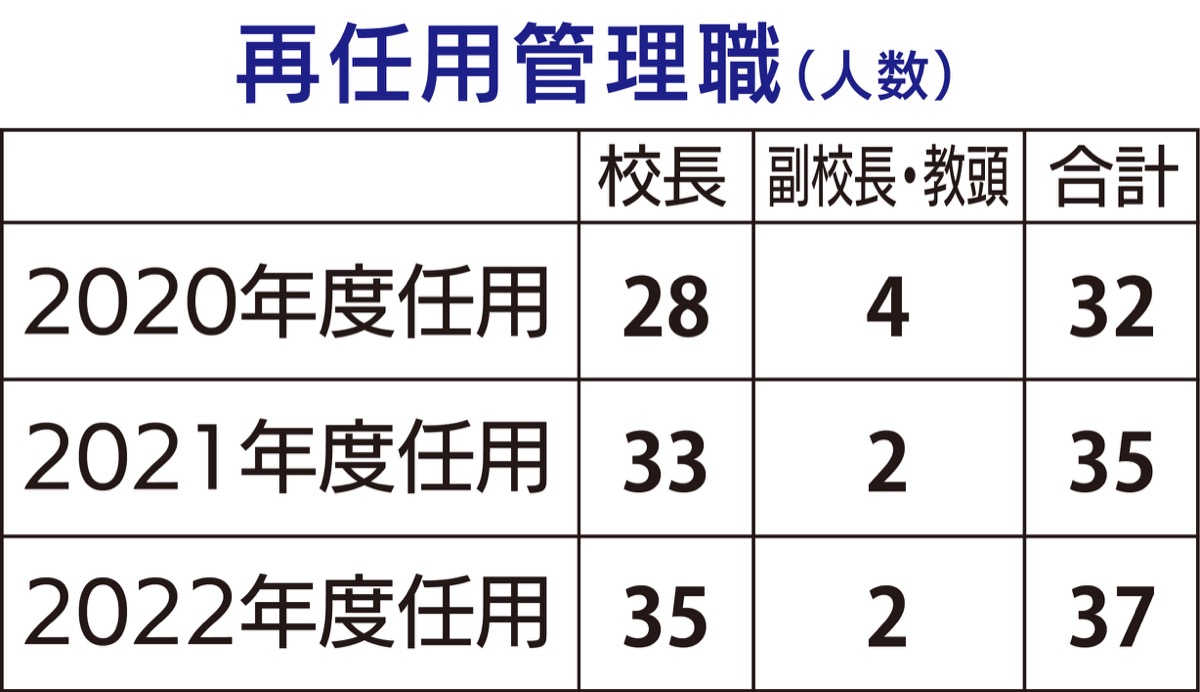 校長に求められる役割は、教育課程編成や危機管理、人材育成など多岐にわたる。ベテラン校長が教育現場にとどまることについて、校長経験者の一人は「学校運営、地域対応のノウハウを、時には失敗などの経験談を通して後輩教員たちに伝えることができる」と意義を語る。