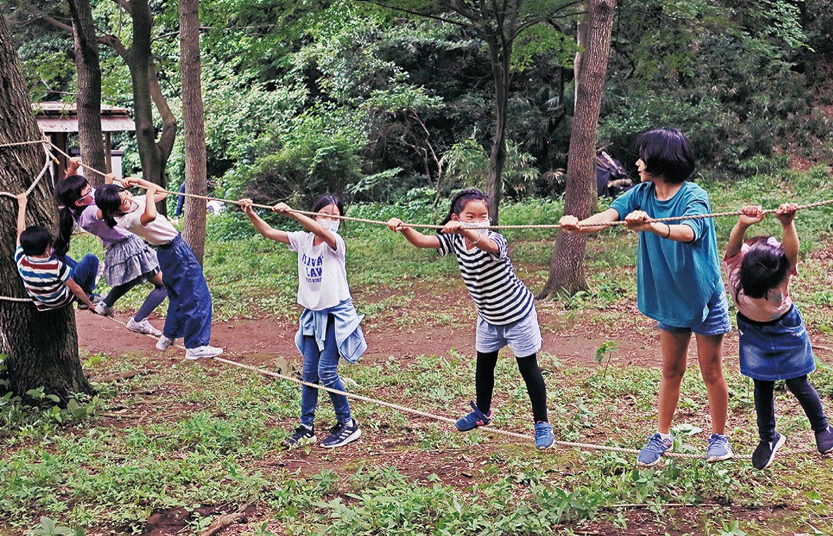 自然の中でできるだけ禁止事項をなくし「自分の責任で、自由に遊ぶ」をモットーとするプレーパーク(冒険遊び場)が6月18日、多摩美の森で行われた。