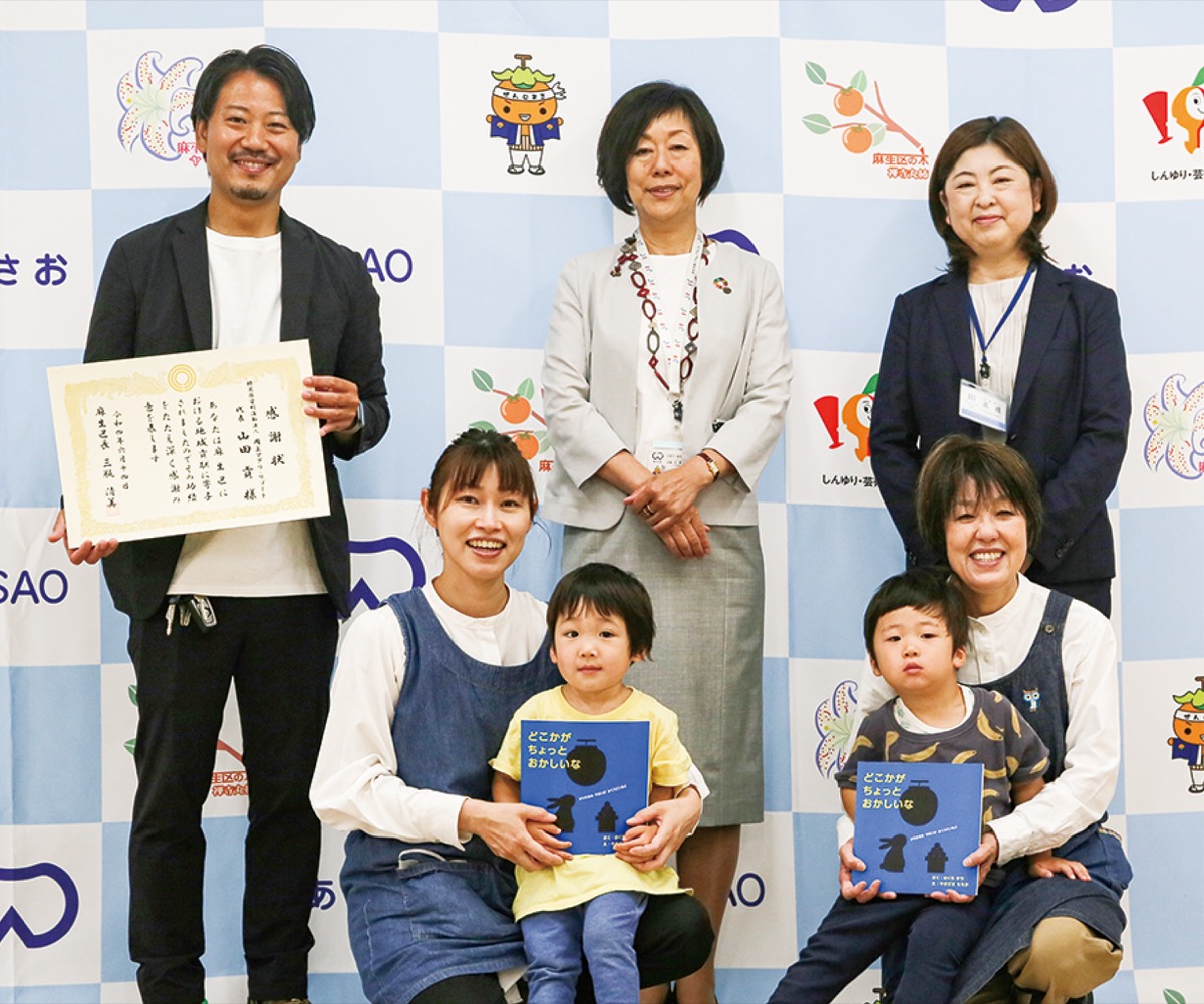 NPO法人岡上アグリ・リゾート(山田貢代表)が制作した川崎の農産物に関する絵本が、麻生区内の保育所など84カ所に寄贈されることになった。未就学児に農産物に興味を持ってもらうことが目的。6月14日には区役所で、制作に協力した保育所の園児が山田代表から絵本を受け取った。