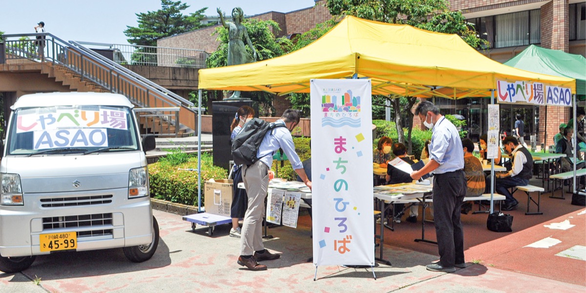 介護士や社会福祉士などさまざまな分野の専門知識を持つ人たちが集まり、悩みや困りごとの相談を受け付ける「しゃべり場ASAO with SDC-Car」が6月27日、麻生区役所前広場で開催された。