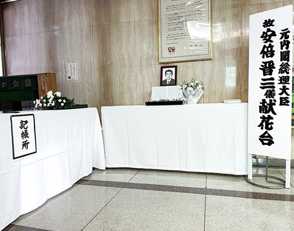 参院選の応援演説中に凶弾に倒れ、亡くなった安倍晋三元首相。自民党川崎市連は7月12日、川崎市役所第二庁舎1階に献花台と記帳所を設置した。15日午後5時まで受け付ける。
