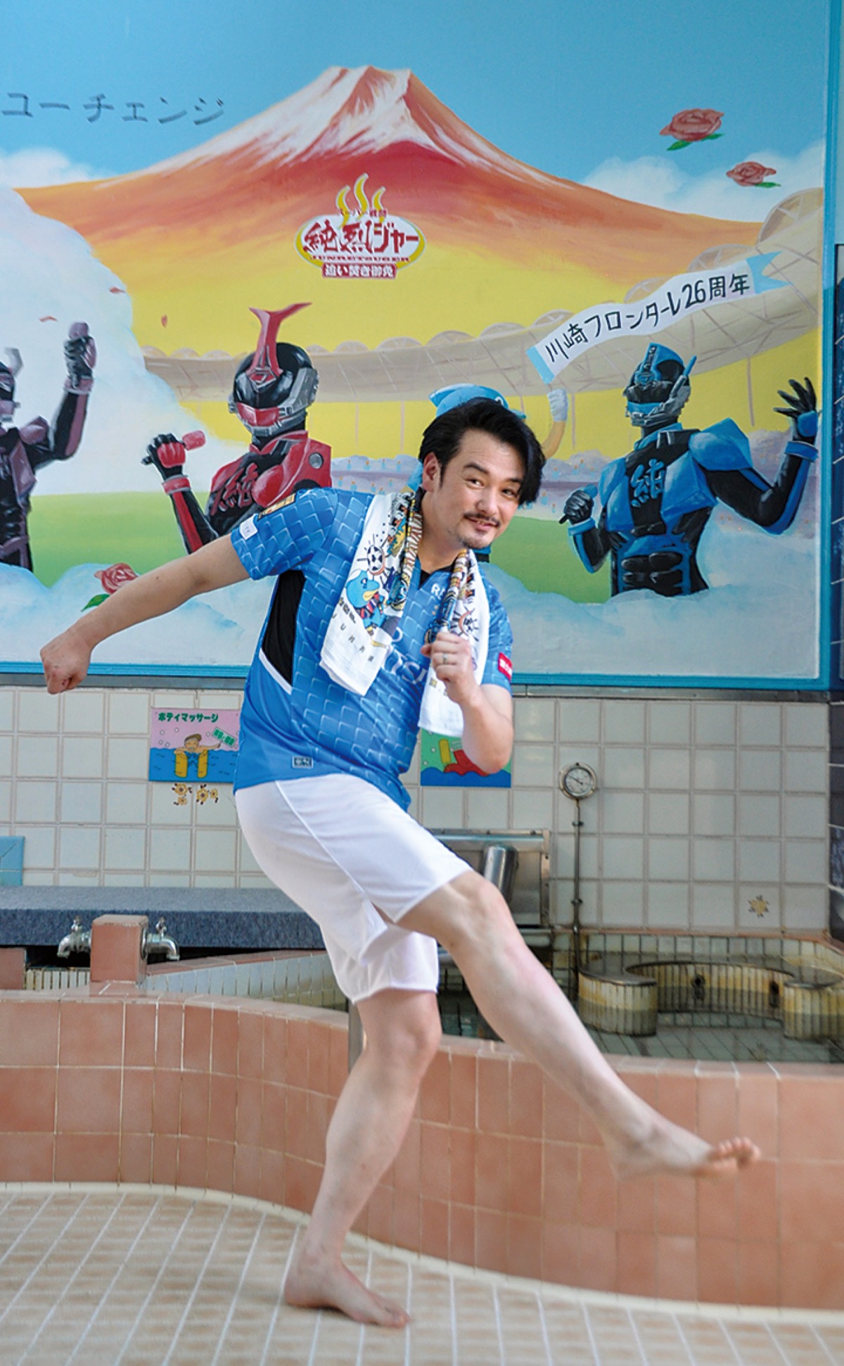 川崎フロンターレの創立26周年記念「川崎・大田銭湯 大スタンプラリー」が7月1日から始まった。キャンペーンの目玉の一つが「026(オフロ)サポーター」として同クラブを応援する、4人組歌謡グループ「純烈」の小田井涼平さんがデザインした手ぬぐい。必要なスタンプ数を獲得し抽選でもらえる賞品で、小田井さんが作品に込めた思いを語った。