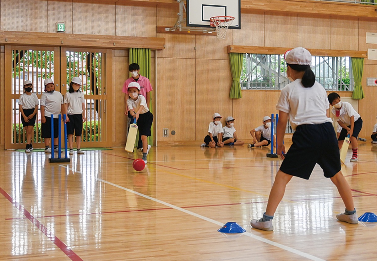長沢小で行われた授業では、元日本代表・宮地直実さんの指導のもと、まずはボールを使った鬼ごっこでウォーミングアップ。ウィケットと呼ばれるポールにボールを当てたり、バットでボールを転がすなどして道具に親しんだ。その後、より実戦に近い形でボールを転がしてバットで打ち、得点を競い合いながら、クリケットの魅力を体験した。体験した男児は「野球みたいで楽しかった」と感想を話した。宮地さんは「みんな楽しんでくれた。競技に興味を持ってくれたら」と話した。