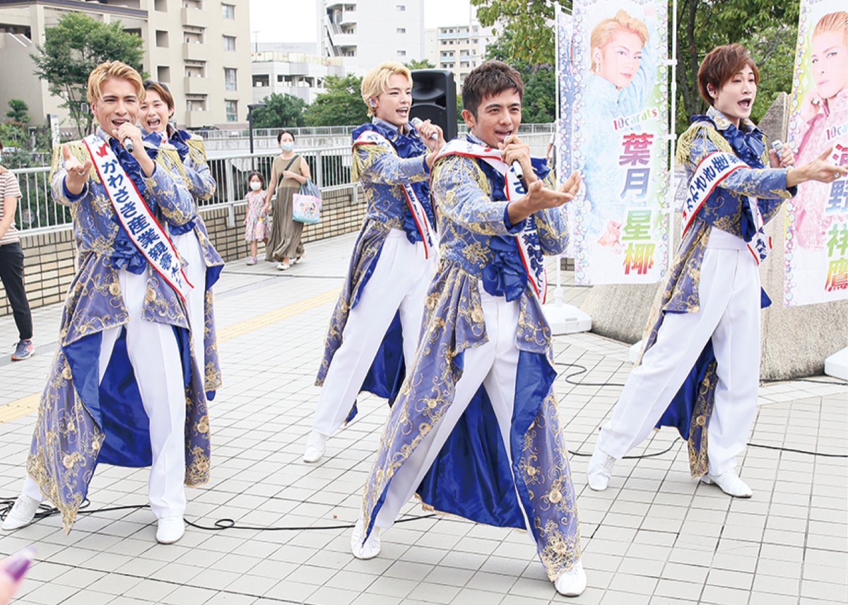 今回は、同日に行われた「しんゆりフェスティバル・マルシェ」の中で、3年ぶりにステージイベントを実施。川崎を拠点にレビューの文化芸術を発信している神崎順さんと、ボーイズレビューユニット「10carats」が出演し、認知症啓発や関係者を応援したほか、取り組みに賛同した人たちの写真を集めた動画などをブースで配信した。