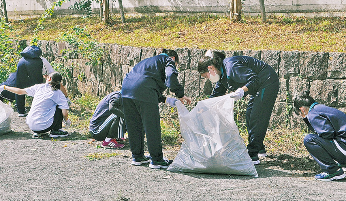 栗木台山家公園の美化活動に参加した女子生徒は「大変だけど楽しかった。自分たちでまちをきれいにできるのは良い」「たばこの吸い殻や、家庭用ごみも落ちていたので、しっかり捨ててほしい」と感想を語った。同校の近藤佑介教諭は「地域貢献につながり、社会性を養う大事な行事。来年以降も継続していきたい」と話した。