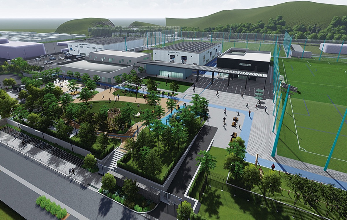 多世代の市民利用を想定しつつ、グラウンドは次世代の選手を育成するアカデミーの拠点に。スポーツ整形・リハビリ施設や保育学童施設も集まり、多目的広場等は災害時の一時避難所として活用される。同クラブ担当者の谷田部然輝さんは「いろんな用途に使ってほしい。市民の皆さんの健康づくりの場になれば」と思いを話す。