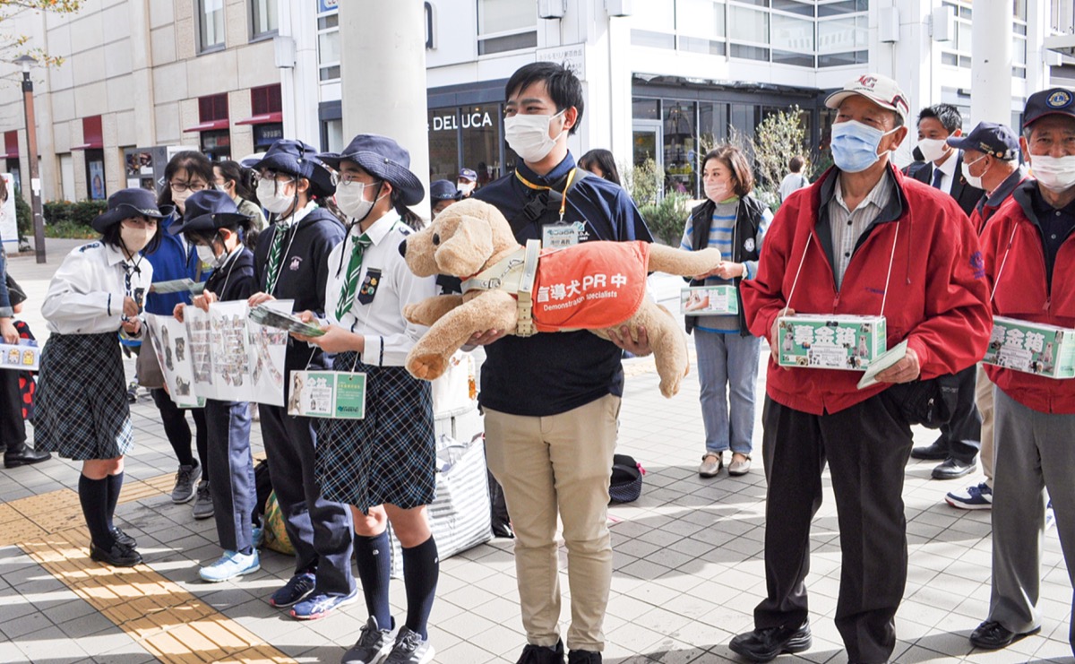 当日は、ガールスカウト神奈川県第32団の協力を得ながら、ペデストリアンデッキで募金を通行者に呼び掛け、13万6088円が集まった。15日には日本盲導犬協会に寄付した。加藤哲朗奉仕委員長は「コロナで盲導犬を連れてくることができなかったが、ガールスカウトの子どもたちのおかげで募金も多く集まった。少しでも皆さんに盲導犬への関心をもってもらえたら」と話した。