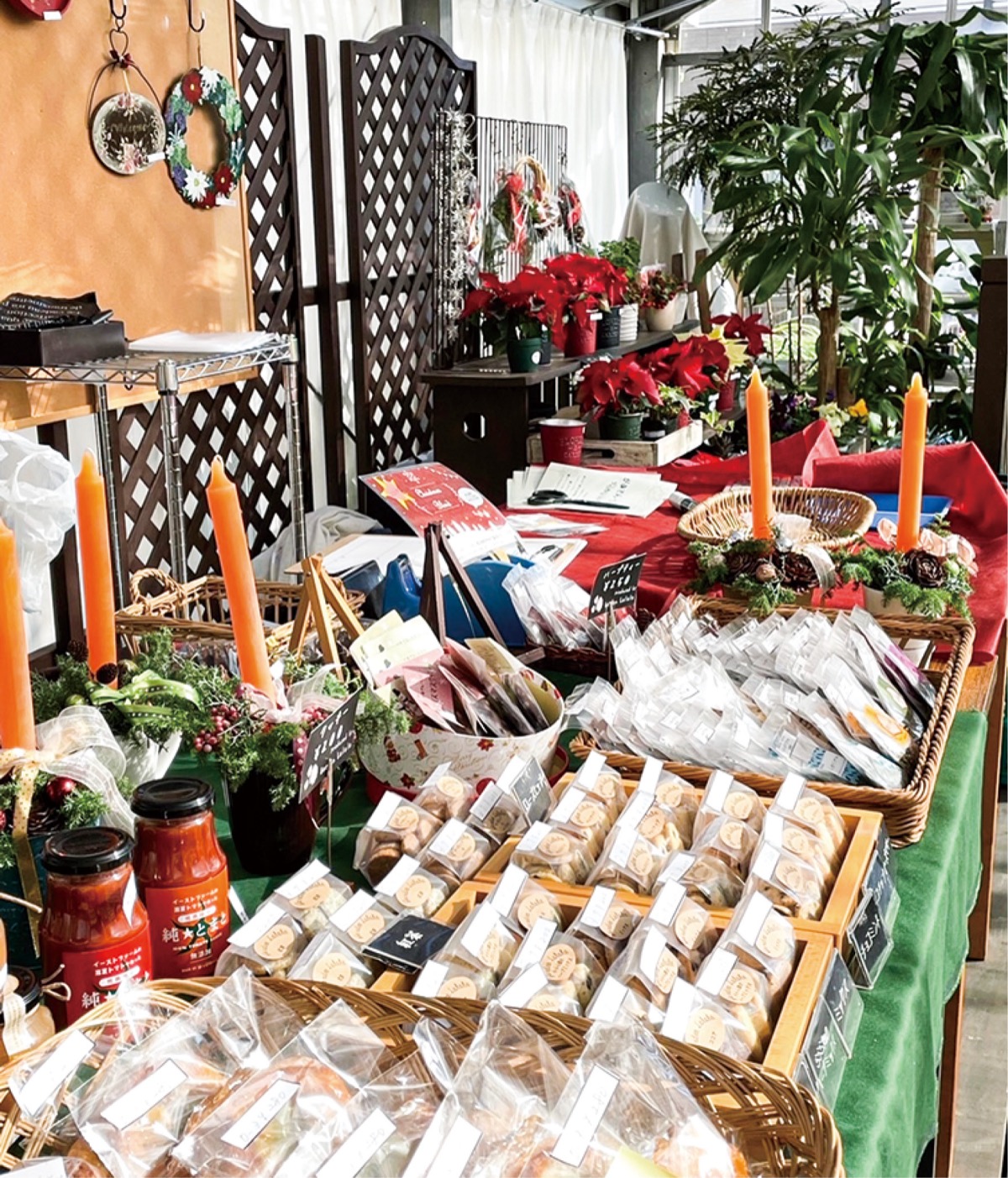 クリスマスマーケットは、地元農家や地域住民などが協力して実施。期間中、店内にはクリスマスにちなんだポストカードや木製カトラリーなどの手作り雑貨のほか、自家製パンや焼き菓子、同店オリジナルハーブティーやジャムなどが日替わりで並ぶ。麻生区産の新鮮な野菜や、花の寄せ植え、多肉植物も楽しむことができる。