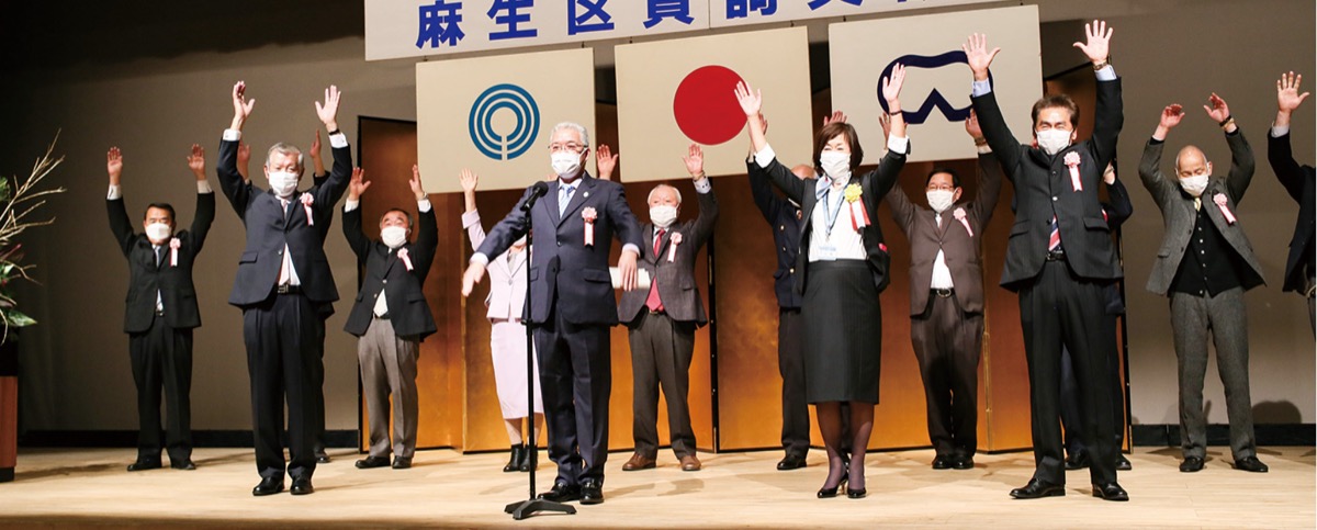 麻生区賀詞交歓会は例年、麻生防火協会、麻生区町会連合会、麻生区社会福祉協議会、麻生区商店街連合会、麻生防犯協会の5団体が主催しており、今回は防火協会が幹事を務めて行われた。