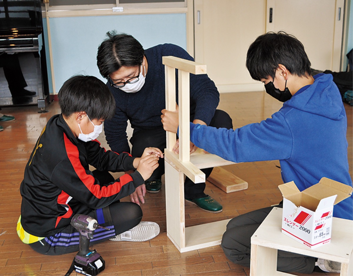 市立虹ヶ丘小学校(井上恵子校長)の6年生25人は2月3日、総合学習の時間を使って、ネクサスチャレンジパーク早野に設置する本棚やベンチなどの製作を行った。