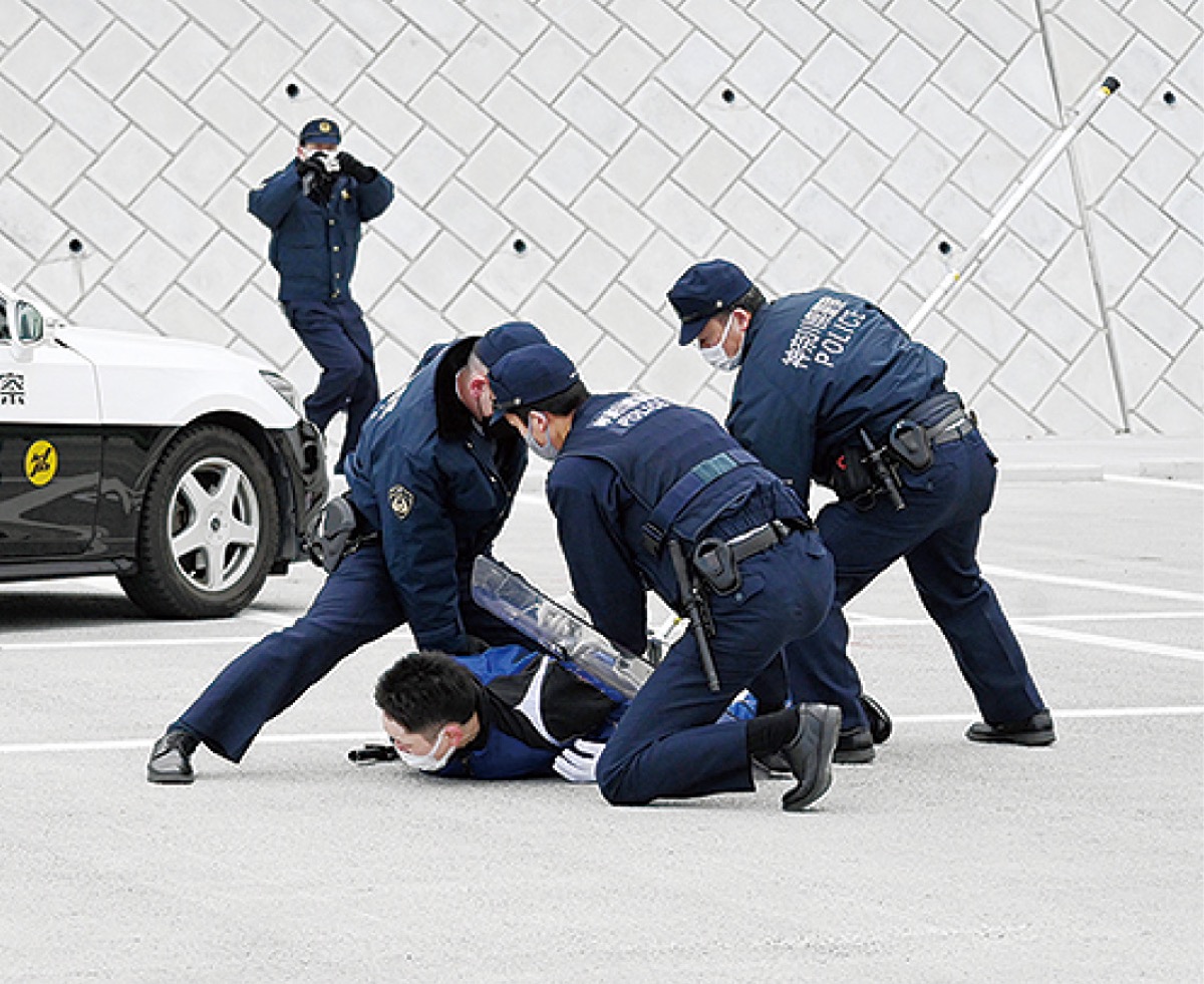 訓練は、犯人が走行中のバス車内で液体をまき、乗客を刃物で切り付けて逃走、バス車内に複数の乗客が倒れているという状況で119通報から始まった。犯人役の男性が乗客役の人たちを次々と襲い、車外へ逃走。駆けつけた警察官が刺股などを用い確保した。車内でまかれた液体の影響で乗客が目の痛みを訴えているため、後から駆けつけた県警NBCテロ対応専門部隊、麻生消防署特別救助隊らに情報を共有。防護服を着た同部隊が液体の成分を調べ、同消防隊が車内に取り残された乗客を救助していった。その間、液体がサリンだったことが判明。宮前特殊災害対応隊らが救助者の除染を行いながら、トリアージし、搬送するまでを行った。