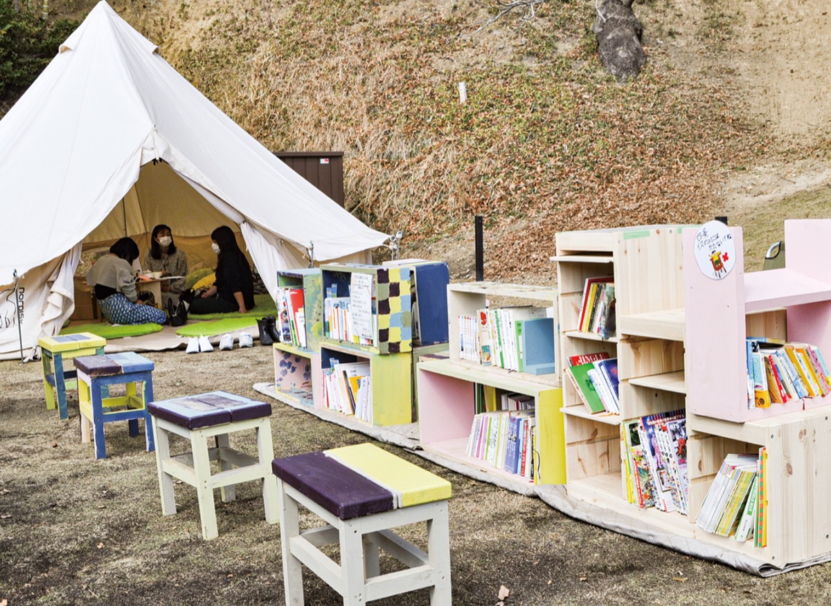 期間中は日替わりで、焙煎コーヒーや、野菜、世界各国のグルメといったキッチンカーが登場。市立虹ヶ丘小学校の6年生が企画した青空図書館は、児童手づくりの棚やベンチに地域から寄贈してもらった本が並べられ、フィットネスや吹きガラスの体験なども行われた。