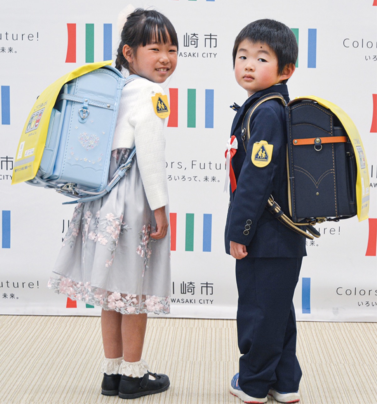 寄贈された品はいずれも、公立114小学校などに配布される。福田紀彦川崎市長は「小学生になると行動範囲が広がるので注意が必要。安心安全な環境を協力してつくっていきたい」と話した。