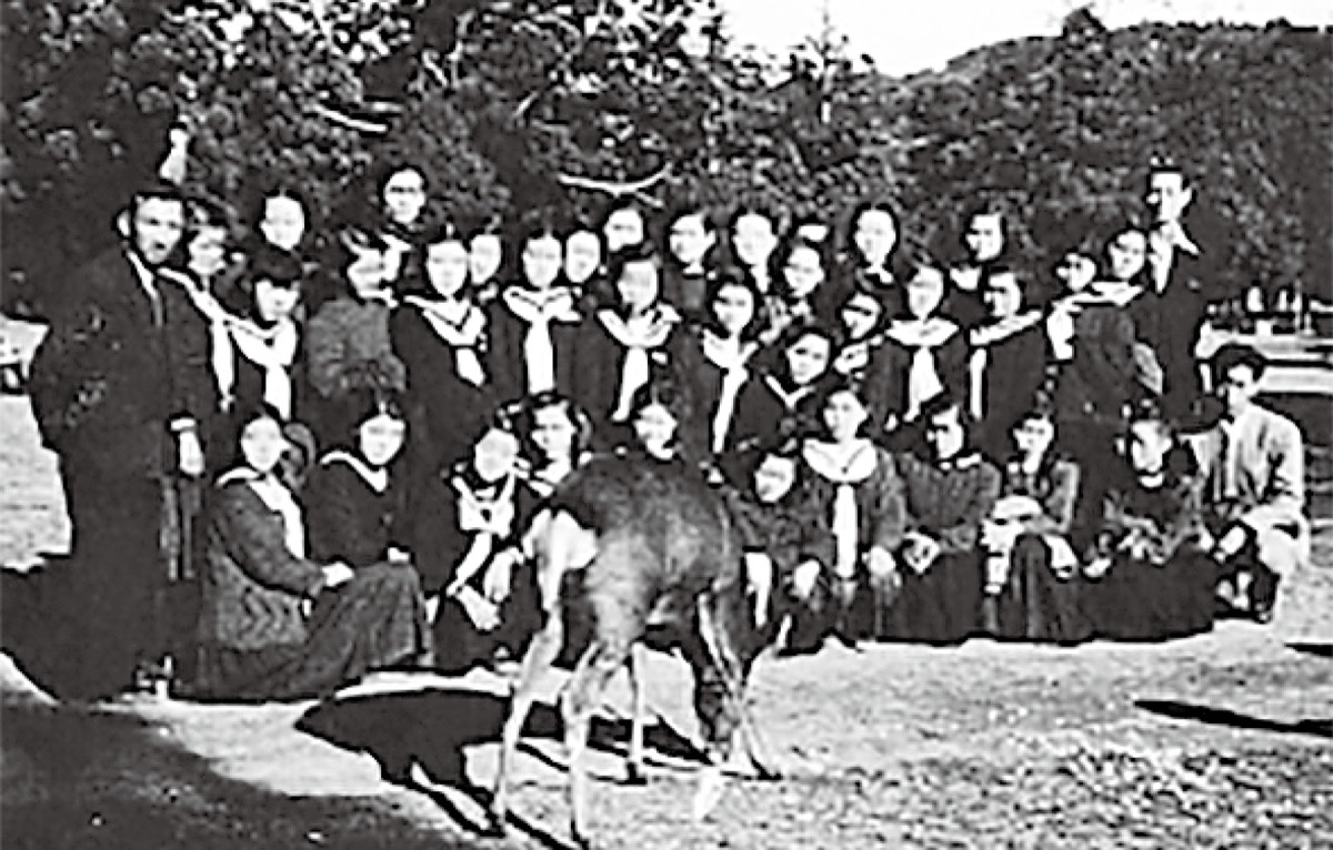 往路は夜行列車を使い(車中1泊)、翌朝京都駅に到着、1日市内を見学して京都に1泊。翌日は奈良に向かい、猿沢の池からほど近い旅館に宿泊、翌朝京都駅から今度は日中の各駅停車で帰路についたのです。夜行列車の旅など、先ず生徒全員が初体験でしたから、日中の列車の旅以上に皆が興奮します。夜になってもなかなか寝付けず、眠っても眠りは浅かったのでしょう。どなたに伺っても2日目の奈良観光の記憶に比べ、初日の京都観光の記憶があいまいなままでした。それでも4期生のある方は、京都御所の見学の際、「ここでは特に静かにしているように」と注意があったので、あんまり静かでつい居眠りしたのを覚えている。ともかく寝不足で、京都はひたすら眠かったと話して下さいました。旅行で楽しかったことを伺うと、奈良公園で鹿と遊んだことと答える方が多数でした。