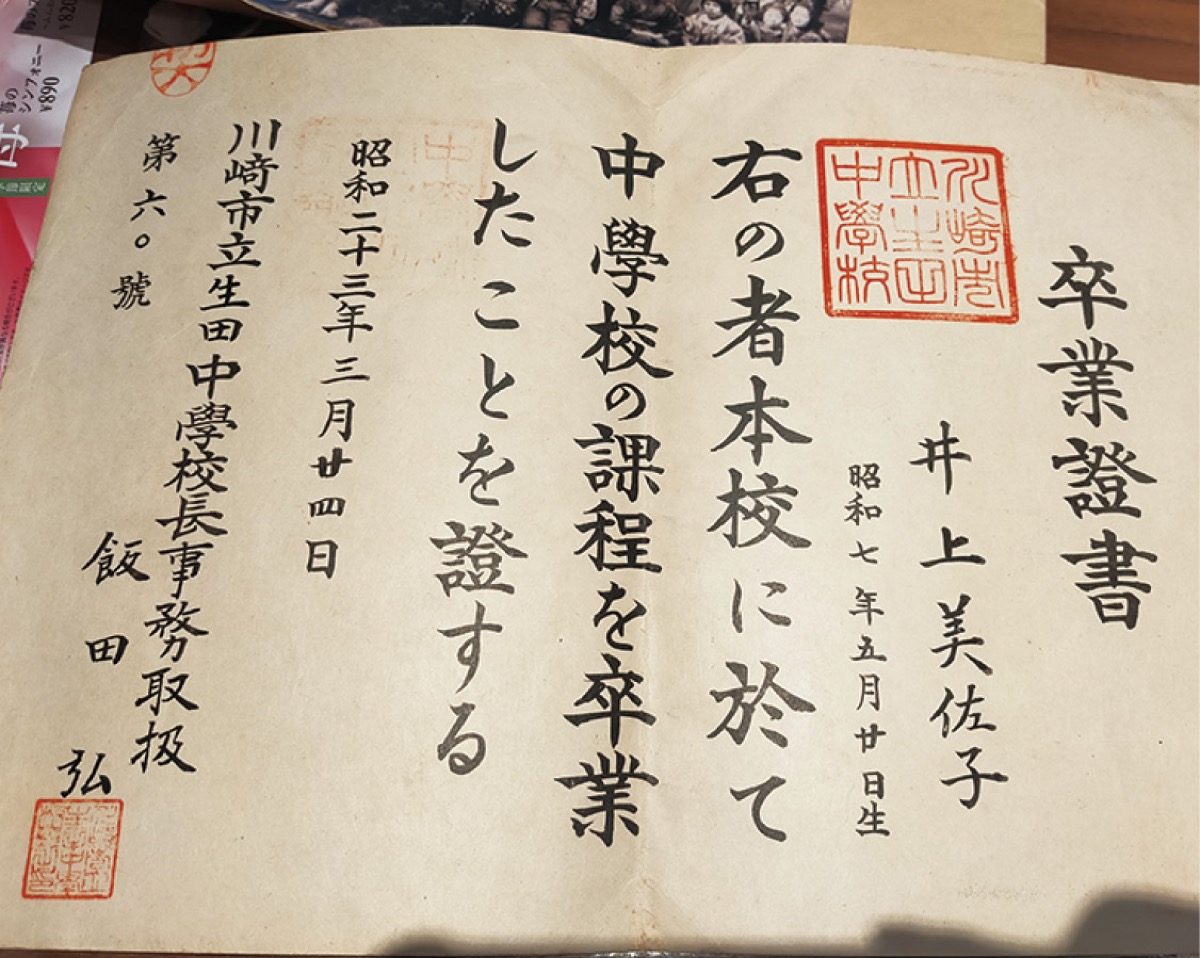 昨年5月まで上麻生で45年にわたり、喫茶店やギャラリーの「華沙里」を切り盛りし、麻生区の文化芸術を支えてきた井上美佐子さん(90)=上麻生在住=は、生田中の1期生だ。家庭の事情で女学校への進学を断念したが、「中学は公立だし、行きたい人は行ってもいいということだったので」と入学した。