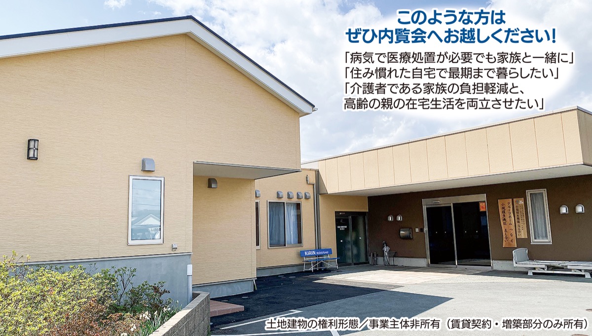 完成した看多機は、医療依存度の高い人や、退院直後で状態が不安定な人、在宅で看取り支援など、住み慣れた自宅での療養を支える医療・介護サービス。主治医との連携のもと、医療処置も含めた多様なサービス(訪問看護・訪問介護・リハビリ、通い、泊まり)が24時間365日提供可能となる施設だ。