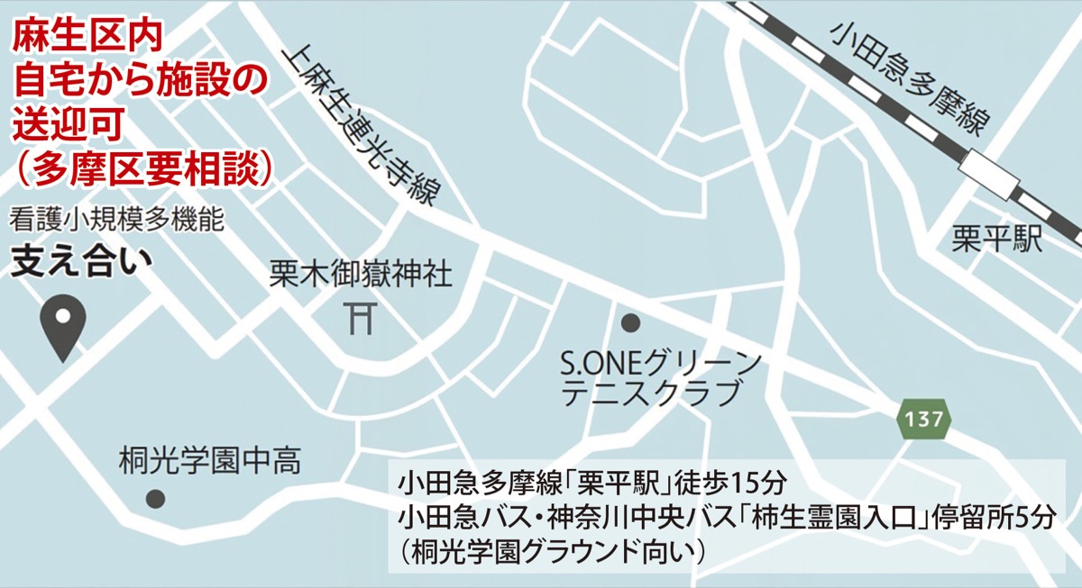 区内栗木にある「支え合い」が看護小規模多機能(看多機)として昨年12月にリニューアル。このほど施設が完成し、4月11日(火)から14日(金)まで、内覧会を開催する。午前10時から午後5時。事前申込のほか、当日見学も受付。