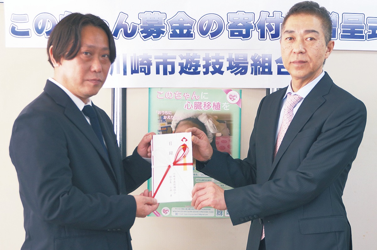 川崎市遊技場組合(小林昇組合長)は3月20日、31万6112円を同会に寄付した。