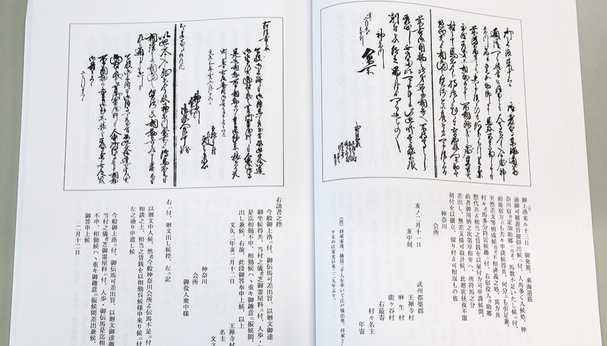 御用留とは、幕府や領主からの通達や触書などのいわゆる公用文書、村からの願いや届けなどを控えた帳面。今回発行されたのは、王禅寺村の領主である増上寺や、関東一円を取り締まっていた出役から出された廻状や触書などを名主(村の長)・志村文之丞が書き留めたものだ。原本は、享保期から断片的に数十冊残る御用留の一冊で、志村家が所蔵する。