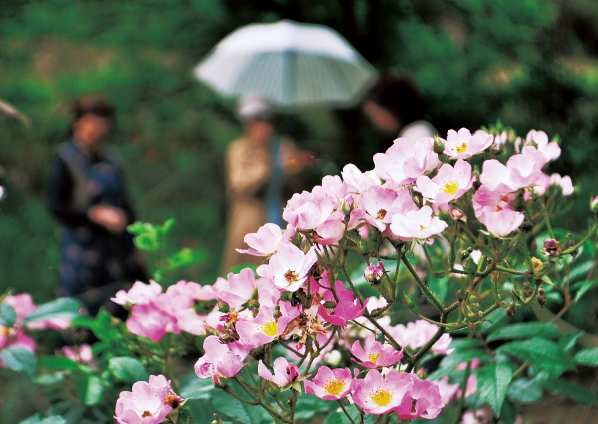 森のような自然の中に、約270種類700本から800本のバラが咲き誇る中、来場者は、多種多様な可憐な花と、辺りを包む香りを堪能した。