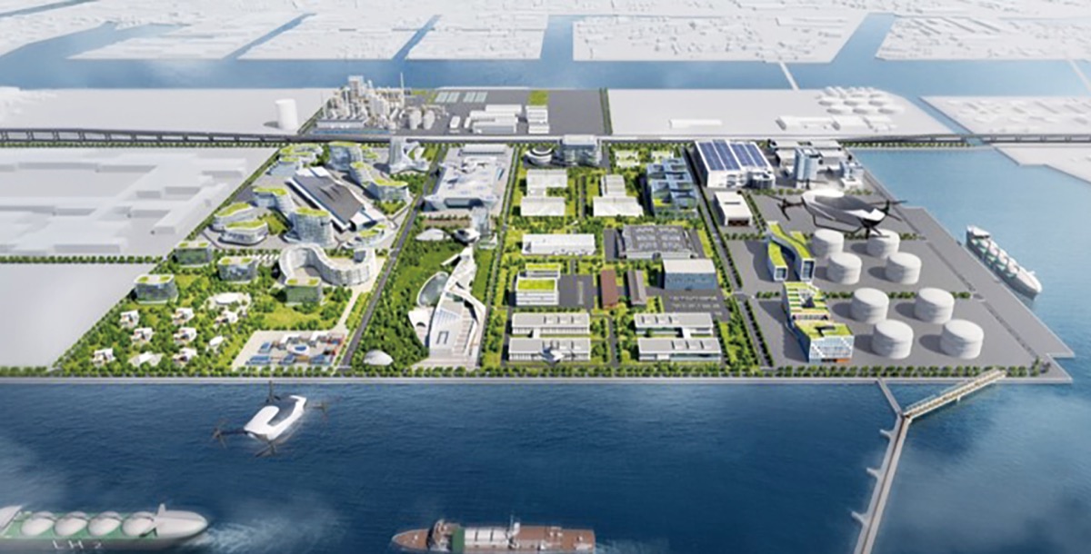 方針案によると、先導エリアの南側は、温室効果ガスを実質ゼロにする「カーボンニュートラルエネルギーゾーン」。北側を「港湾物流・高度物流ゾーン」として整備。水素の貯蔵、供給の拠点を設け、そこから出た冷熱を利用した倉庫やローディングアーム荷揚げ設備を設ける予定。市によると、川崎臨海部は、日本初の大規模水素サプライチェーンの構築にむけた実証事業受け入れ地として選定。先導エリアの利用開始時期は、水素などの供給拠点の整備や実証開始の時期を見据えたという。先導エリアの整備と並行し、首都高湾岸線の出入口を整備。一部供用開始を目指すとしている。