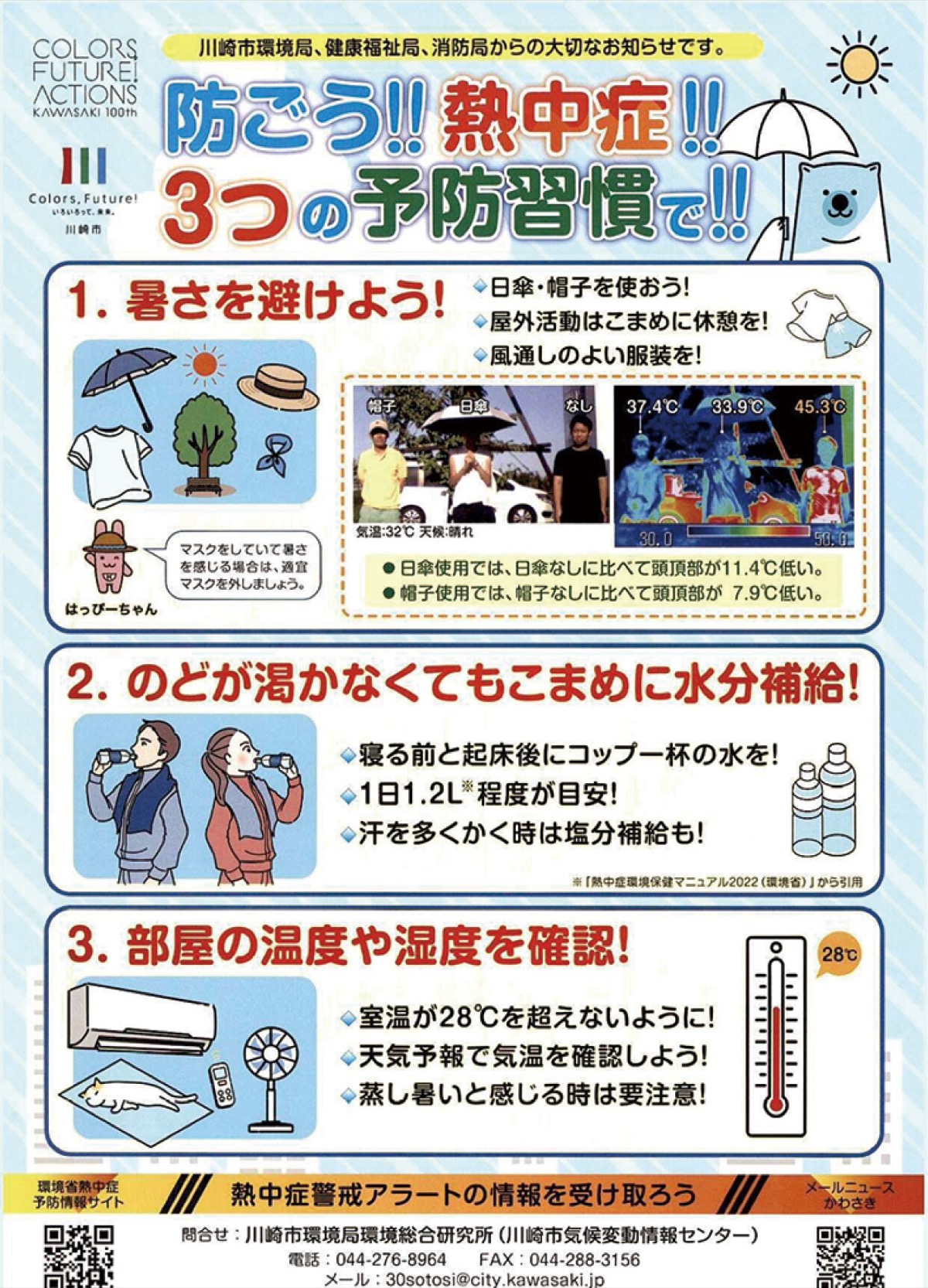 熱中症の予防動画や調査結果などは「川崎市環境総合研究所チャンネル」「川崎市気候変動情報センター」のウェブサイトで公開している。