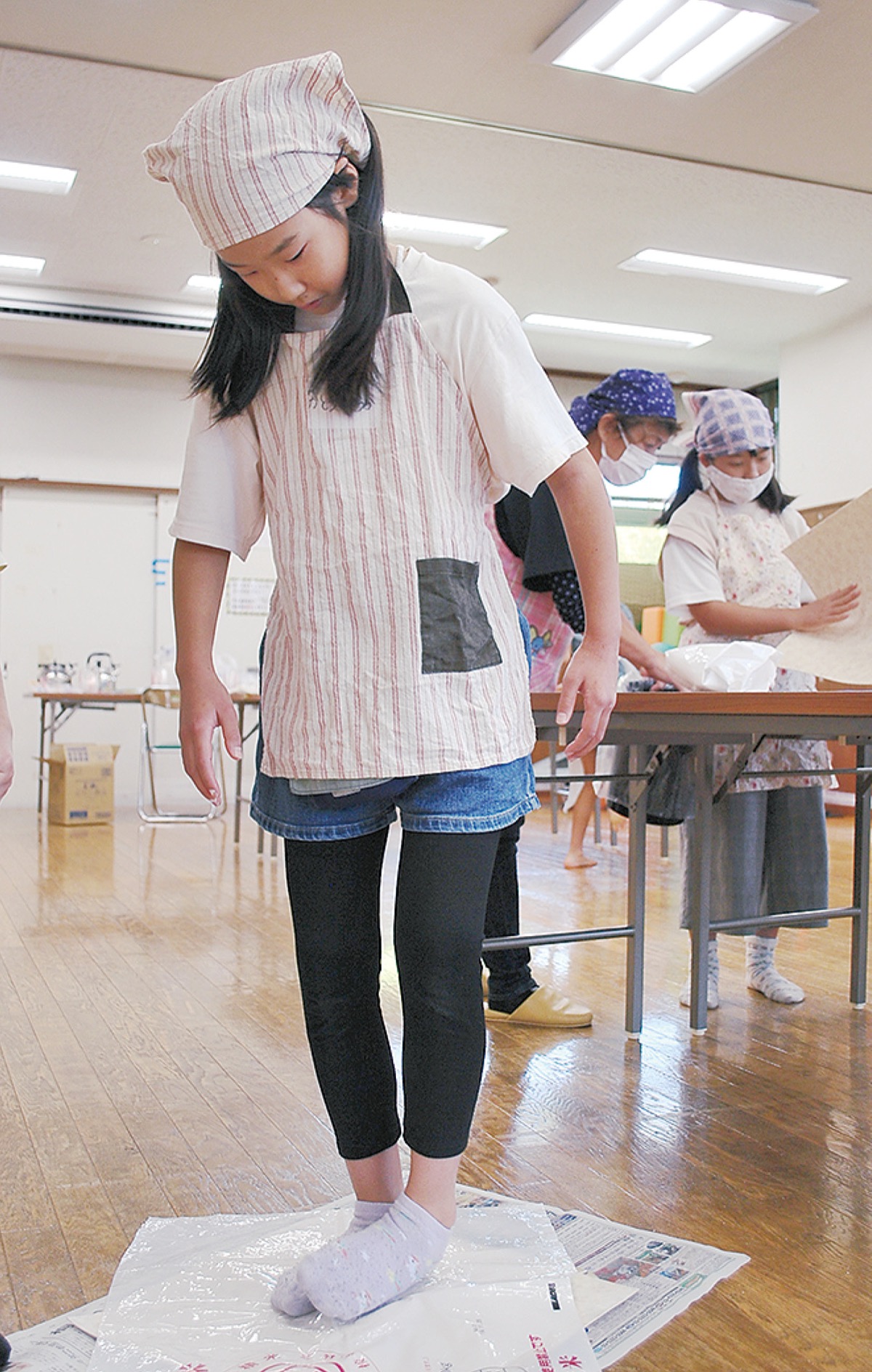 参加した岸本笑茉(えま)さん(小6)は「思ったよりも重労働で大変だったけど、作っている過程でおいしくできたらと思えた。太めの麺が好きなので、好みのうどんが作れた」と笑顔を見せた。
