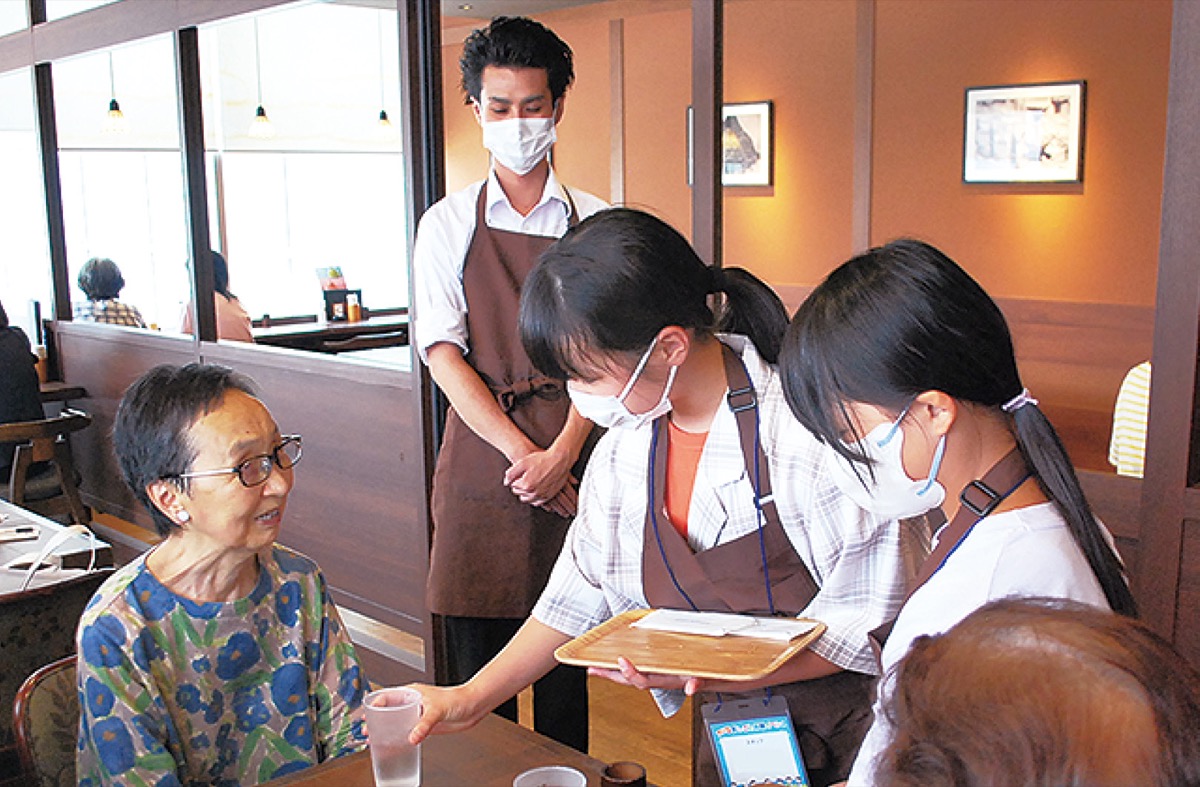 倉式珈琲店では、接客とコーヒーの抽出を体験。実際に客の前での挨拶や水の提供、店員からコーヒーの入れ方についてレクチャーを受けた。青木美結さん(西生田小5年)は「こんな本格的なコーヒーを入れるのは初めて。お客さんの前で接客するのも緊張した」と感想を話した。