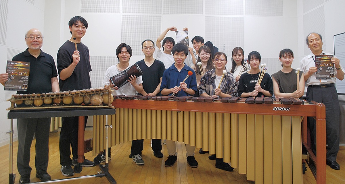 同演奏会は、昨年6月にも開催。同大学の客員教授で元読売日本交響楽団首席ティンパニ奏者の菅原淳さんが指導し、オーケストラの名曲を打楽器アンサンブル用に編曲して披露した。前回出演し、今回はマリンバソロを務める小嶋義貴さんは「日常的に味わっている音楽とは一味違う。珍しい編成にも慣れてきた」と笑顔を見せる。