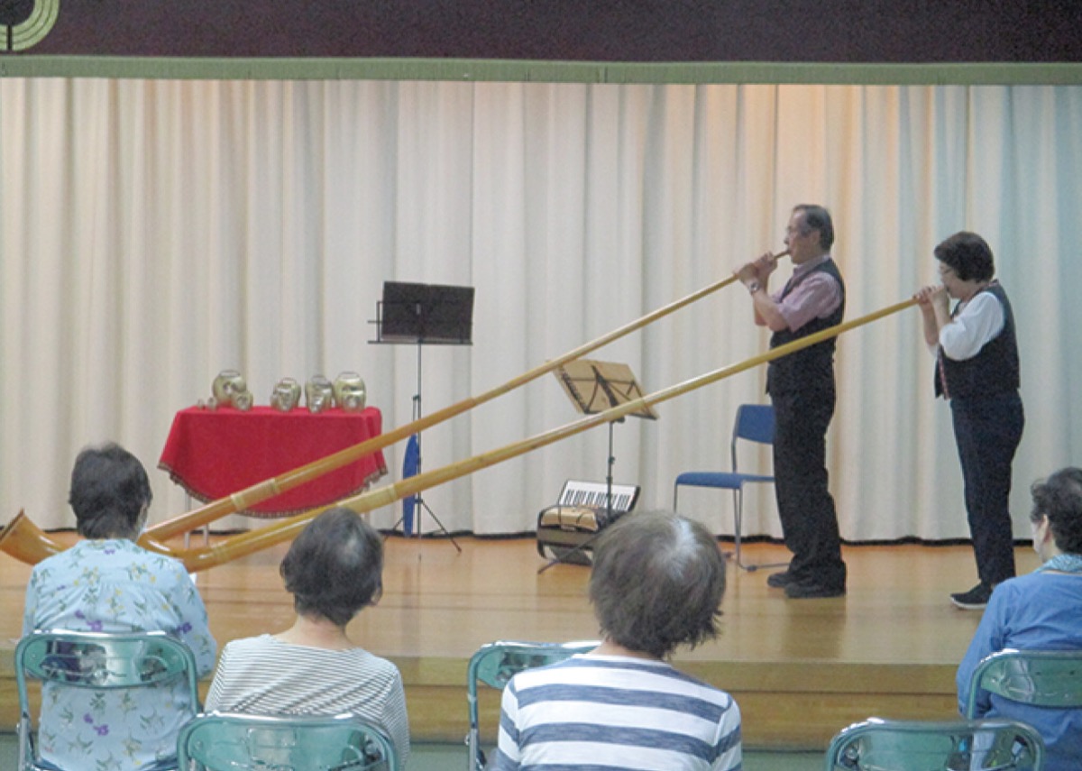 60歳以上の人たちを祝うことを目的に開かれた同イベント。午前の部では、同センターの利用者による演芸大会が行われた。7組が出演し、カラオケや三味線、ウクレレ、アルプホルンの演奏などが披露され、会場は盛り上がりを見せた。