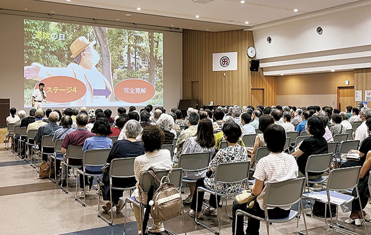 当日は、笠井さんが病気と向き合った姿勢、家族だけでなく病院や医師、看護師などとの関係性など、困難を乗り越えた方法やマインドなどをテーマに2時間ほど講演。誰でも利用できるがん相談支援センターの活用法についても紹介し、経験者の立場から情報共有を行った。