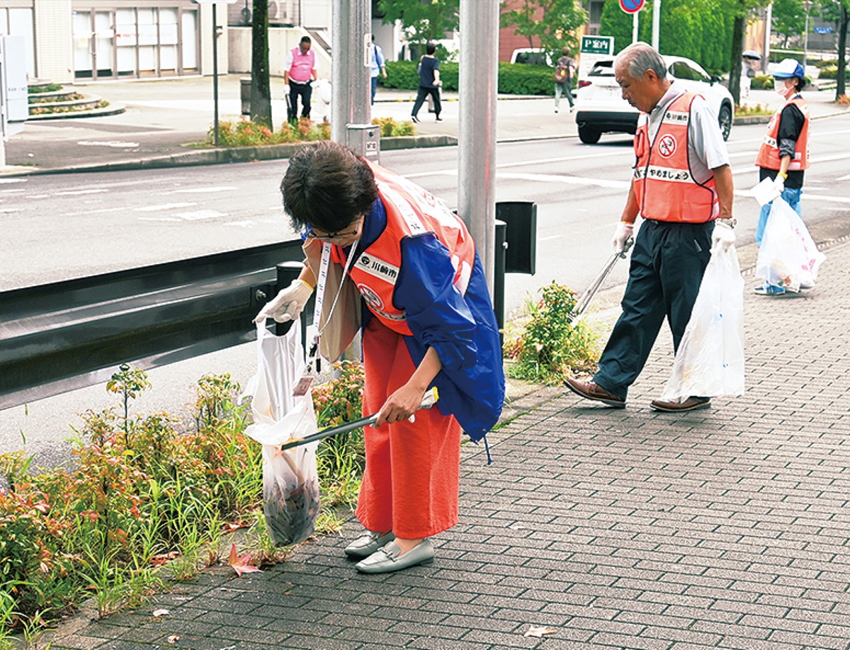 今年も、同駅南口ペデストリアンデッキ下層階で開会式を行った後、参加者はグループに分かれて清掃活動を実施。ペデストリアンデッキから、駅北口、川崎市アートセンターまで、空き缶やたばこの吸い殻などを回収していった。結果、30リットルのごみ袋に可燃ごみ47袋、缶・ペットボトル4袋、びん1袋、金属1袋のごみが集まった。
