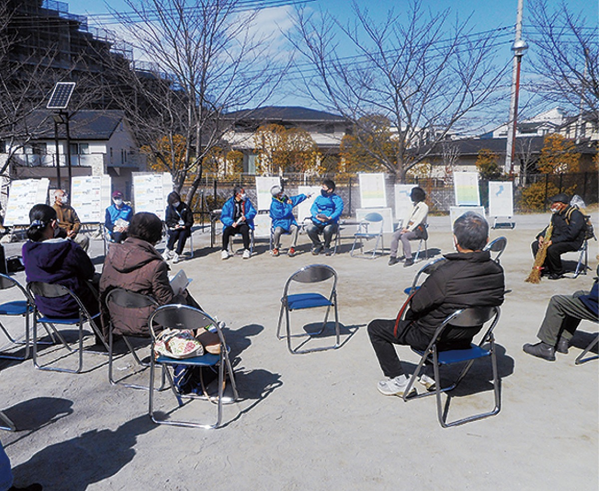 「多様な主体が参加する持続可能な公園の維持管理と利活用の取組」をテーマに、ごみ拾い、草刈りなどの美化活動を行う。花植えや、押し花を使ったしおりづくりなど子ども向けのイベントも開催。11時10分頃から意見交換が行われる。