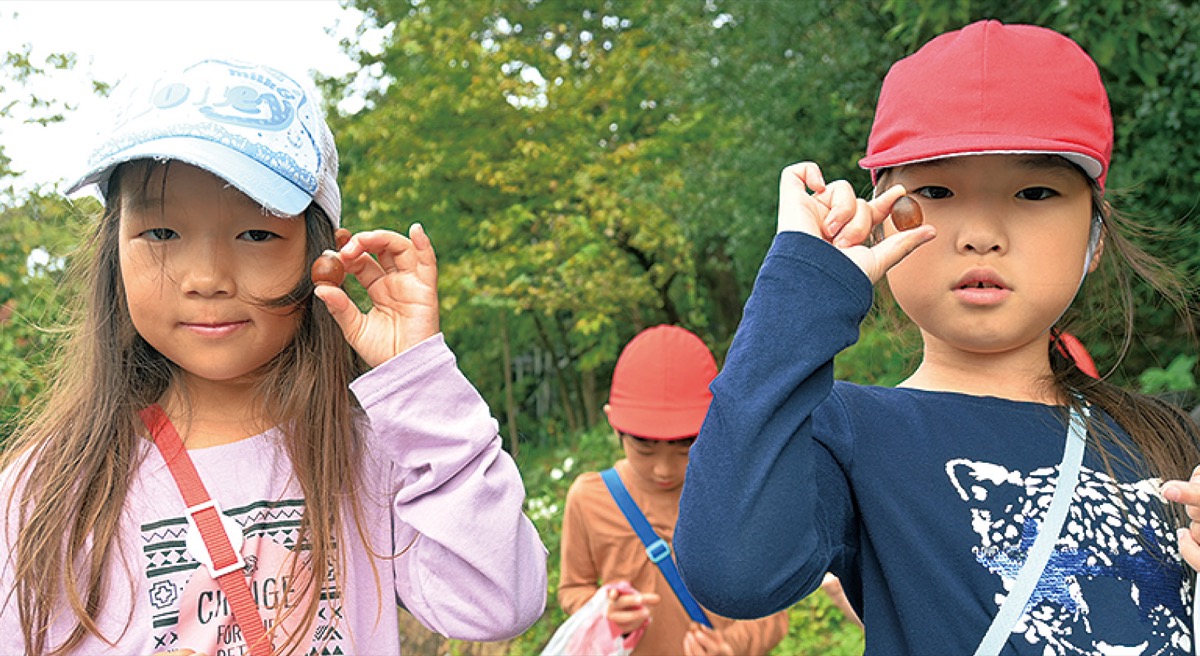同公園を訪れた子どもたちは、今年はドングリ拾いからスタート。小泉代表からクヌギ、コナラの2種類のドングリの説明を受けて、次々と拾い集めた。畑に移動した後は、芋掘りに挑戦。手で土を掘り起こし、ツルに連なる芋をみつけると「大きい」「やったー」と声をあげながら、収穫を楽しんだ。児童たちは「たくさん取れてうれしい」「美味しく食べることを考えるのが楽しみ」と感想を話した。