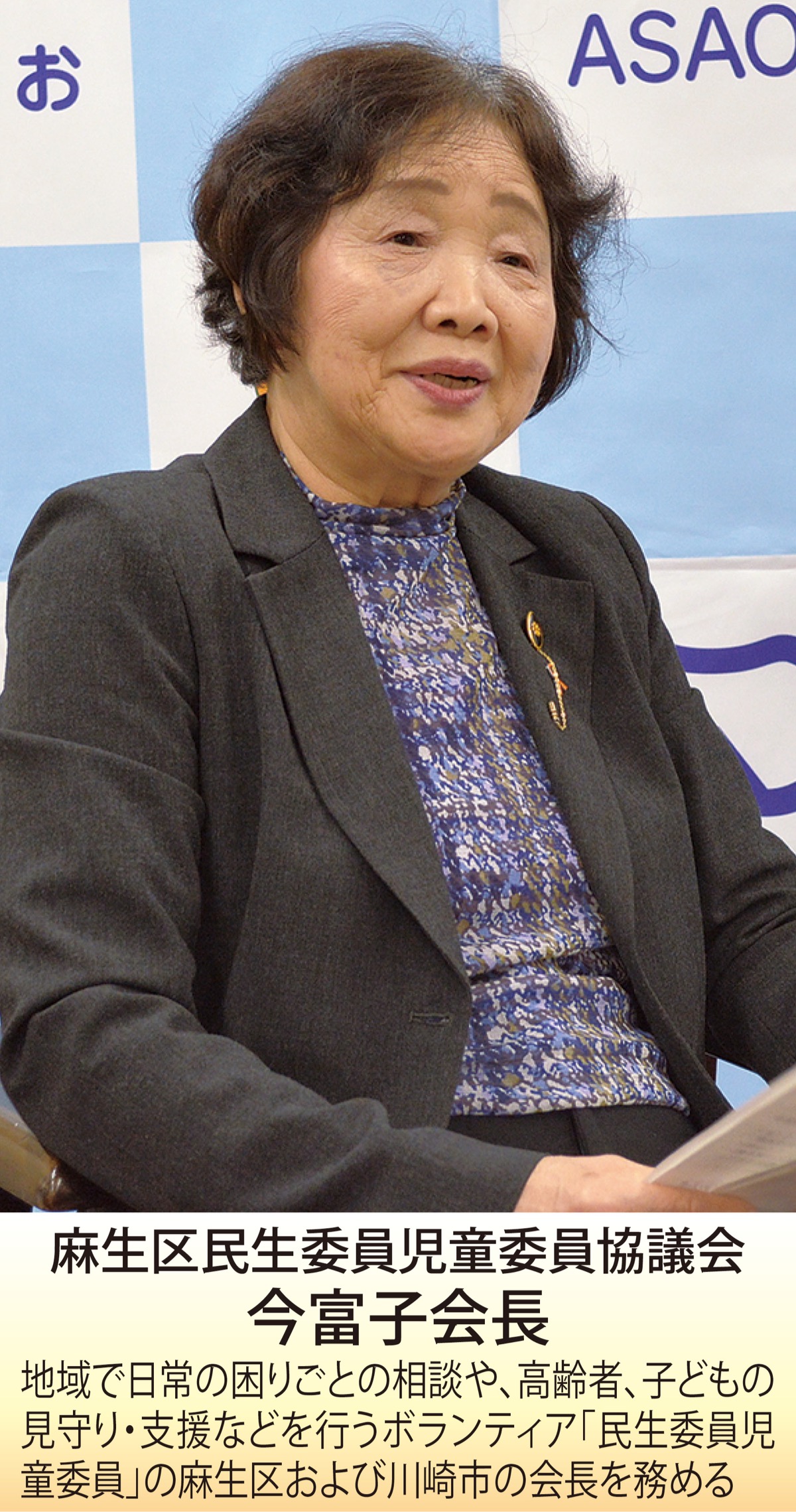 昨年「平均寿命」が日本一となった麻生区。「健康寿命」の日本一を目指し、取り組みを進めている。今回、山本奈保美麻生区長と、麻生区民生委員児童委員協議会の今富子会長に「健康長寿」に向けた取り組みについて聞いた。(聞き手/本紙・麻生区編集室 中島崇雄)