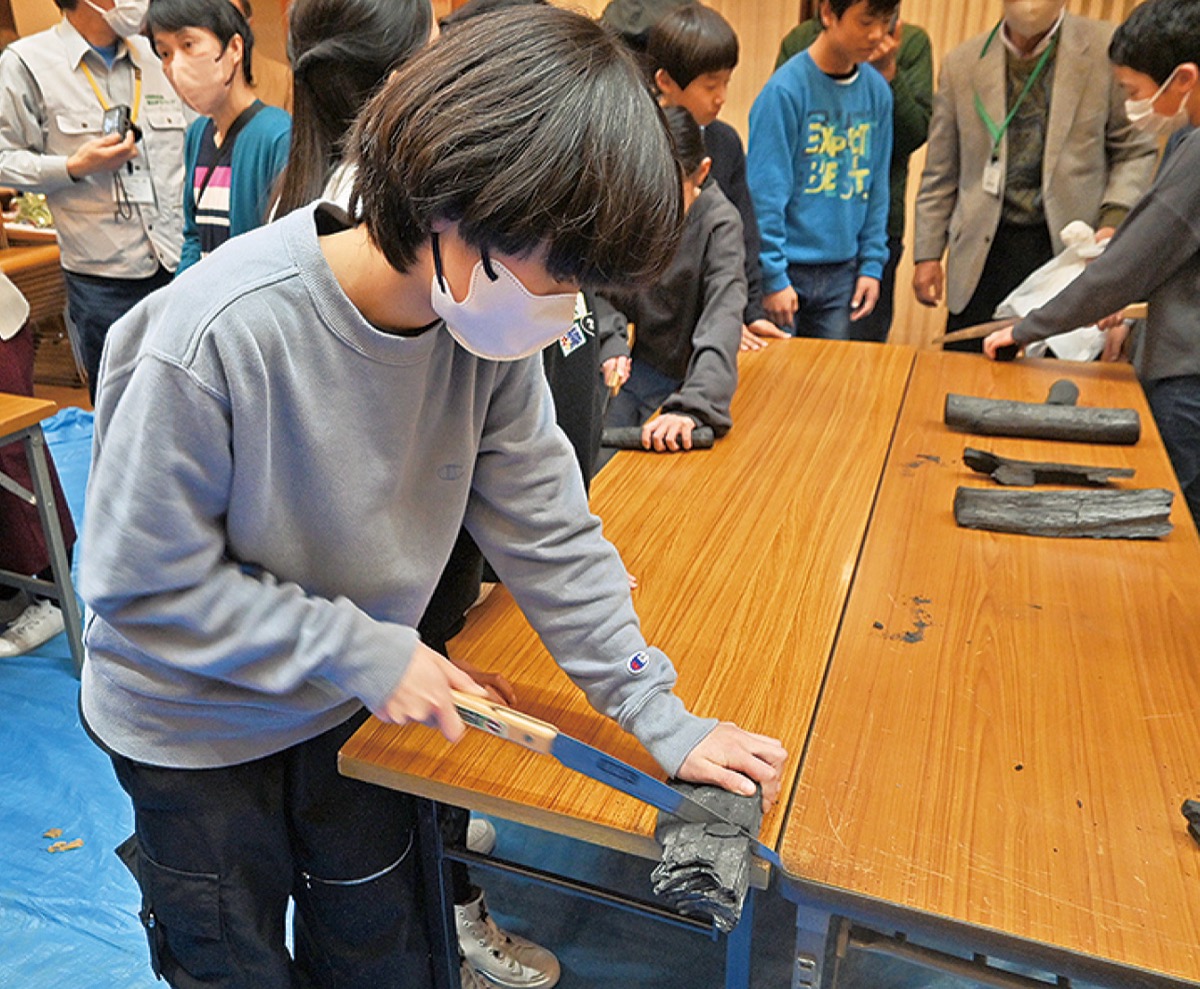 岡上小は、学校裏手にある丸山の環境や生き物、遺跡について個々に調べたことを、東柿生小は、年間を通じて早野聖地公園の里山ボランティアの協力で体験してきた活動について紹介。柿生小は、柿生の里クラブの協力で「おっ越し山」「柿生の里」での里山保全活動を発表した。