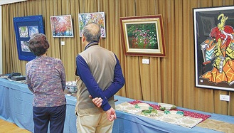 今年はプロの画家から趣味の美術愛好家まで20人の作品が出展される。絵画、陶芸、絵手紙、写真から竹工芸までジャンルやテーマはさまざま。