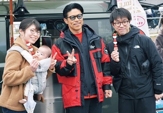 企画の中で一般向けに販売するのは今回が初。当日は山田さんやスタッフが4種類のメニューを調理し、提供。松本さんが購入者と一緒に写真に納まる姿も見られた。イチゴ串を購入した家族は「散歩がてら来たら本人がいて驚いたけど会えてうれしい。イチゴはギュッと実が詰まっていて甘くておいしかった」と笑顔を見せた。