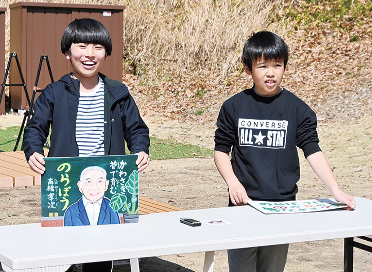 同校の5年生は、今年度、総合的な学習で学校の畑で育てた夏野菜を同施設で販売した。そのときの収益でのらぼう菜の苗を購入。この日の販売に合わせて、多摩区で野菜名人として知られ、のらぼう菜の普及等に努めてきた故・高橋孝次さんの農園スタッフから教わり、育ててきた。