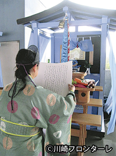 クラブスタッフ立ち会いの下、川崎区大師駅前の若宮八幡宮の前宮司で現在は水神社宮司を務める中村紀美子さんが祝詞を奏上した。中村さんによると、シーズン開幕にあたり、選手たちがケガをせず、持っている力を十分に発揮できるよう祈願したという。