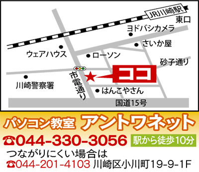 高齢者に「安心して通える」と評判のパソコン教室が川崎区小川町のアントワネットだ。