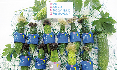 受賞作は「なでしこTAJIMAが伝える節電対策」。庁舎内で収穫したゴーヤーの実を使い、サッカー日本女子代表「なでしこジャパン」に見立てた作品だ。優秀賞の一報にメンバーの一人の木原裕美さんは「優秀賞の一報に職員からの歓声が沸き、拍手喝采でした」と喜んだ。