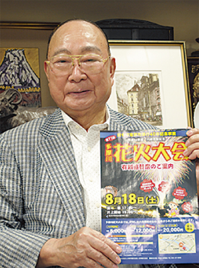 第71回川崎市制記念多摩川花火大会が、8月18日(土)19時〜開催される(開場17時・荒天時翌19日に延期)。同日に世田谷区側の花火大会も開催され合わせて1万2千発の花火が打上げ予定。「昨年に引き続き震災復興のため東北物産展も企画しています」(斎藤文夫(社)川崎市観光協会会長)。