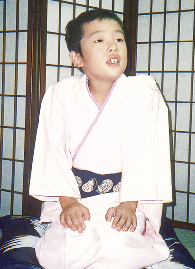 晴之介君は東京都葛飾区在住。いしあたまさんの弟子である祖父の影響で落語好きになり、今年2月、自らいしあたまさんに入門した。毎月1〜2回、いしあたまさん宅に通い、稽古を積んでいる。