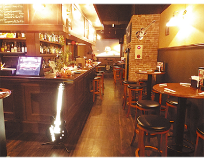 食事メニューは1品500円〜700円とリーズナブルで、ドリンク類も充実。生演奏に酔うもよし、自分のテクニックに酔いしれるもよし。あなたなりの楽しみ方で、心地良いひとときを。イベント情報は店頭またはフェイスブックで。
