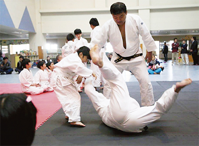 子ども達に受け身や技などを紹介し、柔道の楽しさや礼儀などを実技を交えて子供達にわかりやすく講演を行いました。