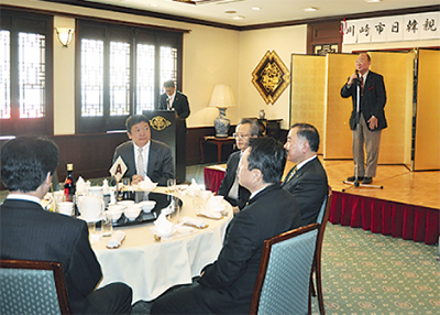 斎藤会長は「国際的に日韓関係は難しい問題もあるが、協会ではそこを乗り越え、2014年もお互いにとって良い年となるよう頑張りたい」と話すと、会場から拍手が起こった。