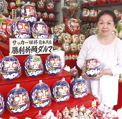 小田切商店(大師町)で、「サッカーW杯日本代表勝利祈願ダルマ」が販売されている。全国各地から問い合わせもあり、同店では配送に追われている。