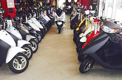 しかし、エコだからといっても安い買い物ではない。買換えのタイミングなどは悩むものだ。その辺の疑問を、幸区南加瀬にある大型バイク専門店ユーメディア川崎に聞くと「距離を乗る方はもちろん、10年くらい前のバイクに乗っている方は買換えをおすすめしています。長く乗るものですから長い目で見ればお得です。当店では、ただ今買取りキャンペーンも実施しておりますので、うまく活用すれば、低予算で買うことも可能です」と話す。